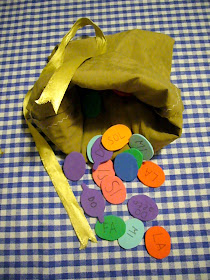 Quando nella storia si parla delle note che vengono raccolte nel sacchettino, si tira fuori dalla scatola il sacchettino e lo si mostra.